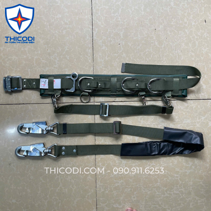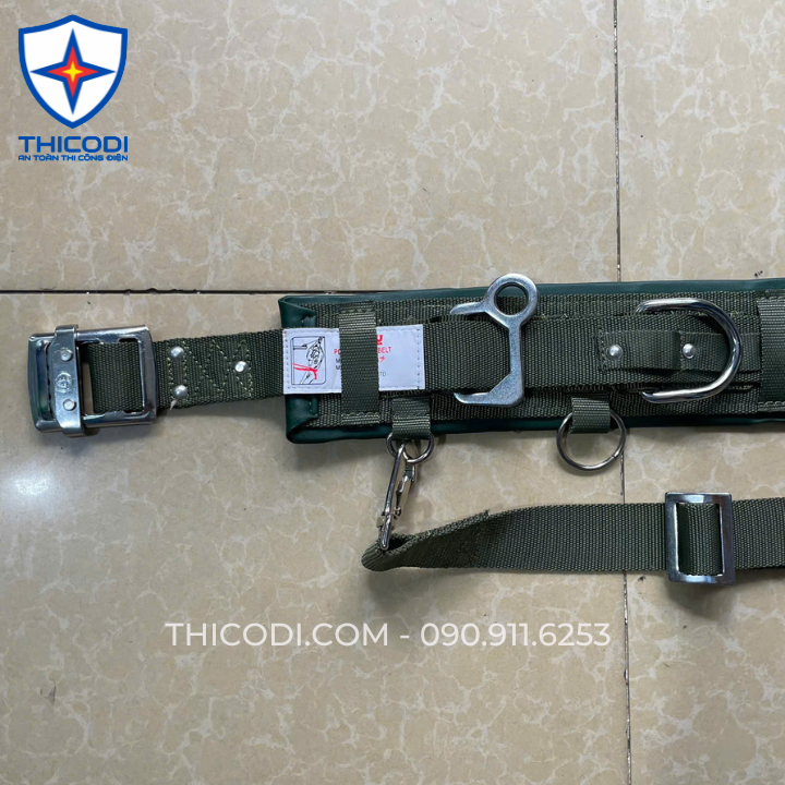 H117D HARU Nhật Bản – Dây đai an toàn điện lực bảo hộ lao động – Gồm đai bụng kèm dây ngồi, bảng dẹt 2 móc xoay